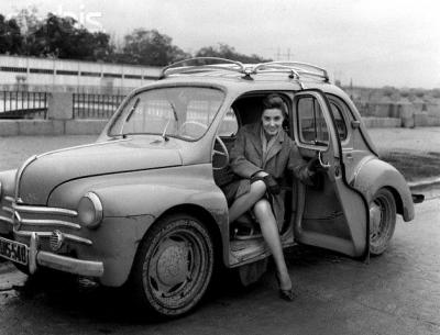 Concha Bautista en en un Renault 4 de la epoca.
